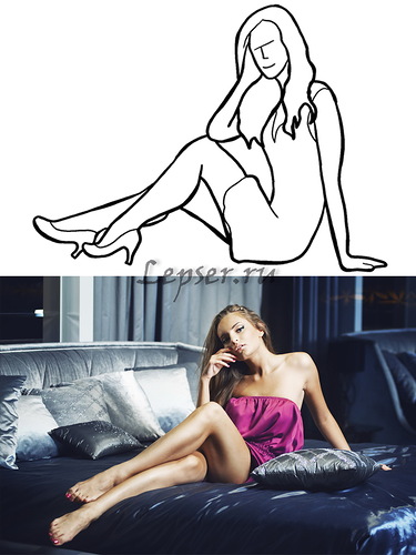 59. Очень красивая и элегантная поза. Помните, что главное в этой позе то, что модель должна наклониться немного вперёд от спинки дивана (кресла, скамьи и т.д).