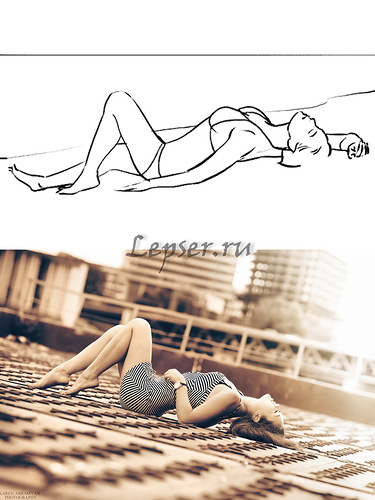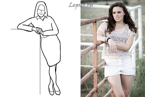 В заключении ещё раз хотелось бы отметить, что все показанные примеры служат лишь стартовым началом, поскольку существует бесконечное множество вариаций по каждой позе. Не надо бояться экспериментировать, модель может менять выражение лица, улыбку, поворот головы и тела, положение рук или ног и т.д. Даже самое минимальное изменение позы со стороны модели или изменение ракурса съёмки со стороны фотографа способны полностью изменить одну и ту же позу. Пробуйте изменять расстояние между вами и моделью, а также прибегать к разному кадрированию снимка и его композиции. В общем, совершенствуйтесь путем проб и ошибок, не зря говорят: «На ошибках учатся». Чем больше вариаций вы попробуете, тем лучше будут полученные результаты. А теперь вперёд, осуществлять свои фантазии!