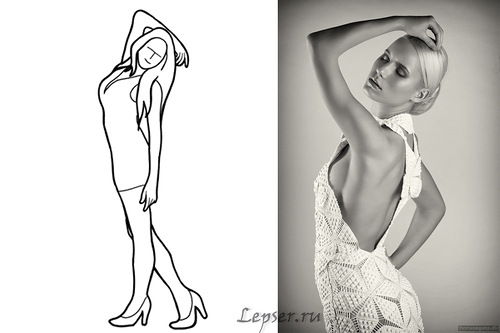 20. Одна из лучших поз для стройных моделей с огромным количеством возможных вариантов. Чтобы поймать наиболее выгодную позицию, попросите модель медленно менять положение рук и непрерывно изгибать тело.