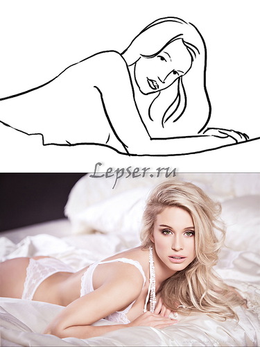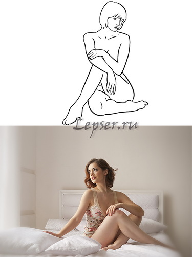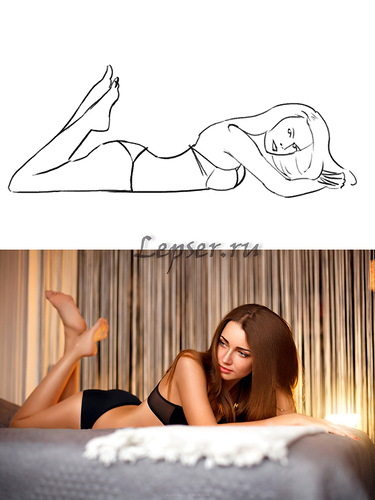 44. Прекрасная поза для интимной фотографии. Хорошо применяется в различных условиях, на кровати, пляже и т.д.