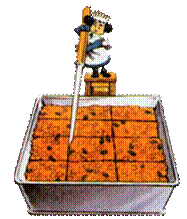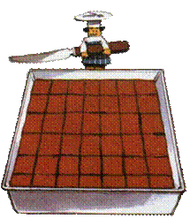 Дай готовому коржу охладиться в течение10 минут, не снимая его с противня. Он немного осядет. После этого нарежь его на квадратные куски и охлади на решётке. Храни в жестяной коробке для печенья.