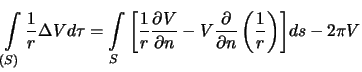 обращается в бесконечность. Опишем вокруг этой точки сферу с малым радиусом. Интегрирование по телу, ограниченному поверхностью , можно разбить на два этапа: интегрированию по всем точкам тела, исключая малую сферу, содержащую точку , и интегрирование по малому шару, ограниченному малой сферой :