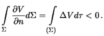 Mы пришли к противоречию: вследствие минимума внутри малой сферы, нормальная производная на поверхности этой сферы будет положительной, следовательно и приведенные выше интегралы будут положительны, что противоречит сделанному выше выводу. Таким образом, теорему можно считать доказанной.