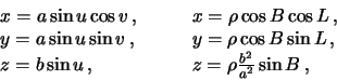 Для того, чтобы получить формулу Сомильяны в окончательном виде, необходимо от эллипсоидальной системы координат перейти к геодезической. Сопоставим две системы координат для точек поверхности эллипсоида