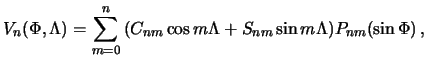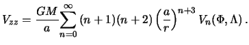 Мы видим, что после дифференцирования каждый член разложения потенциала приобретает коэффициент, растущий с увеличением степени как Однако, одновременно с этим эффектом существует и "интегрирующий" эффект: с увеличением расстояния Английский ученый Каула экспериментально показал, что амплитуды сферических гармоник потенциала убывают с возрастанием степени Выполним простейший расчет "частотной характеристики" преобразования сферических гармоник потенциала в гармоники радиальной второй производной на высоте Пусть