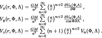Подставляя полученную формулу в (7.18), будем иметь компоненты градиента потенциала притяжения на расстоянии