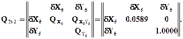 Отметим, что размерность mL и mМ в формулах (2.43) и (2.44) должны совпадать. Структура матрицы весовых коэффициентов для способа полярных координат полностью соответствует структуре матрицы, полученной для прямой угловой засечки (2.35). Для способа полярных координат матрица параметрических уравнений поправок в численном виде будет иметь следующий вид