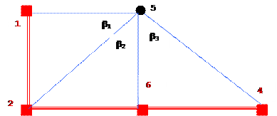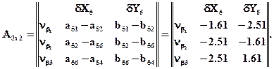 Матрица параметрических уравнений поправок для обратной угловой засечки, которая изображена на рисунке 2.20, на основании формул (1.19) имеет следующий вид