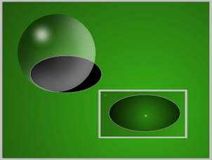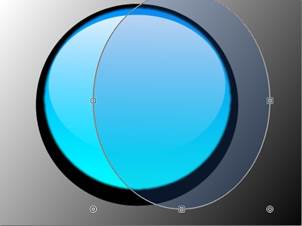 Теперь от овала с бликом нам надо оставить полумесяц. Для этого выделим на слое с белым овалом с помощью инструмента «выбор области овальной формы» выделим овал, который надо убрать.