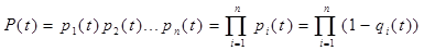 (далее аргумент t в скобках, показывающий зависимость показателей надежности от времени, опускаем для сокращения записей формул). Соответственно, вероятность отказа такой ТС