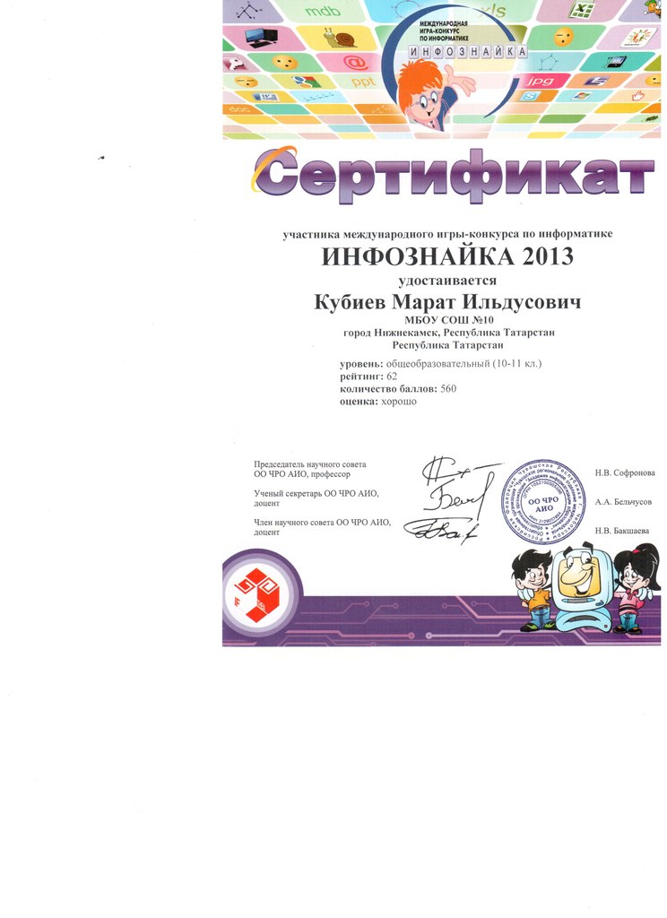 Фамилия Кубиев Имя Марат Отчество Ильдусович Класс 10 Б Период, за который представлены документы и материалы: с «1» 092012 г. По «27» 042013 г.