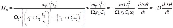 6. Асинхронный электромагнитный момент взаимодействия токов, индуктированных в демпферной обмотке и обмотке возбуждения с результирующем полем. При малых скольжениях этот момент можно записать следующим образом