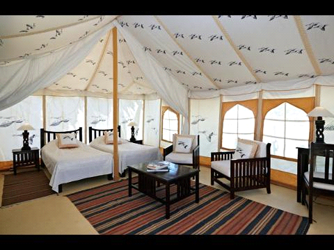 20. THE ROYAL CAMP 3* (Индия) Количество номеров: 100 номеров. Типы номеров: Палатки. Инфраструктура отеля: терраса. Типы питания: не предоставляется. Бесплатный сервис: круглосуточное обслуживание. Платный сервис: прокат автомобилей; сейф у администратора; обслуживание номеров; пункт обмена валюты; прачечная; организация экскурсий; вызов доктора. Развлечения и спорт: сафари на верблюдах; джип сафари; верховая езда. Для детей не предоставляется. Рестораны, бары: прекрасный ресторан-палатка с отменной индийской, местной и континентальной кухнями, по вечера кукольный театр, дискотека и развлекательные программы. The Royal Camp – оригинальный отельный комплекс, предлагающий незабываемые впечатления от отдыха. Разместившись в этом отеле, гости получат максимум комфорта и ярких эмоций от погружения в реальную жизнь города с его богатой историей и традициями. Месторасположение: Отель расположен в туристическом городке Nagaur в Rajasthan, внутри the Nagaur Fort. Описание номеров: Все палатки оформлены с точки зрения максимального комфорта, состоят из веранды, ванной комнаты и спальни, укомплектованы современной и удобной мебелью.