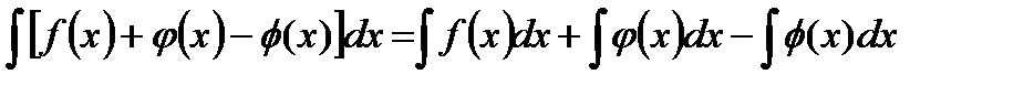 3. Неопределенный интеграл от алгебраической суммы функций равен алгебраической сумме интегралов от слагаемых функций:
