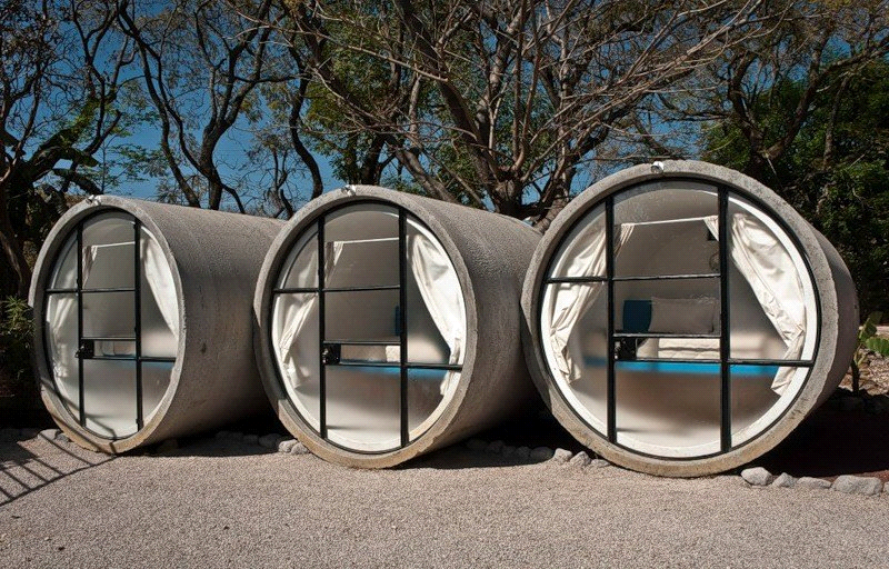 Отель в канализационных трубах Номера отеля расположены в цементных трубах, используемых в строительстве стоков и канализаций. Внутри довольно уютно: двуспальная кровать, шкаф, светильник, шерстяной коврик, есть электричество, можно ходить с высоко поднятой головой. Душа и туалета в номере нет, но каждому постояльцу выдают план, где указано расположение душевой комнаты, туалетов, зоны отдыха, кафе, ресторанов, а также ближайших магазинов и достопримечательностей. Выглядит немного по-спартански, но огромная уютная кровать, красивые принты и низкая рента вполне располагают к комфортному жилью. Хипповская демократичность, модная тема ресайклинга, парк за окошком — все в одном флаконе. При этом сколько заплатить за пребывание в нём — вы решаете сами! Отель работает с мая по октябрь (последние заезды в сентябре), не на все даты есть свободные места. За отель надо будет заплатить столько, во сколько Вы сами оцените проведенную ночь).