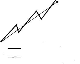 Работы в области технического анализа за последние 30 лет показывают, что технический анализ — это именно теория с собственной философской системой и набором аксиом. О философской системе речь пойдет немного позже, а все аксиомы разберем прямо сейчас. Аксиома 1. Движения рынка учитывают все Это утверждение — краеугольный камень технического анализа; его осознание — главное для адекватного восприятия всех методик. Суть аксиомы заключается в том, что любой фактор, влияющий на цену (например, рыночную цену товара), — экономический, политический, психологический — заранее учтен и отражен в ее графике. Поэтому изучение графика цен — обязательное условие для прогнозирования. Пусть этот подход не покажется читателю предвзятым. Ведь трудно не согласиться с тем, что цена чутко реагирует на изменение всех внешних условий. А аксиома говорит всего лишь о том, что на любое изменение цены есть соответствующее изменение внешних условий. Например, в фундаментальном анализе утверждается, что если спрос превышает предложение, то цена на товар растет. Технический аналитик делает вывод "наоборот": если цена на товар растет, то спрос превышает предложение. Таким образом, люди, использующие технический анализ, живут в реальном мире и четко представляют, что рост и спад цены вызываются определенными фундаментальными причинами. В то же время они не считают, что эти причины нужно знать. Напротив, аналитики и трейдеры стараются с помощью различных инструментов изучить графики движений рынка, предполагая, что в них уже заложены все "физические" факторы. Аксиома 2. Цены двигаются направленно Это предположение стало основой для создания всех методик технического анализа. Термин тренд* означает определенное направление движения цен. Главной задачей технического анализа является именно определение трендов (т.е. их характеристик от момента возникновения до самого конца) для использования в торговле. Существуют три типа трендов (рис. 1.1 а,б,в): 1. Бычий (Bullish) — движение цены вверх. 2. Медвежий (Bearish) — движение цены вниз. 3. Боковой (Sideways, Trading Range) — цена практически не Понятно, что все три типа трендов встречаются не в чистом виде, поскольку движение "по прямой" на ценовом графике можно встретить очень редко. Для большей ясности можно определить бычий тренд (рис. 1.2, а) как тот, при котором движения цены вверх преобладают, т.е. больше по величине, чем движения вниз. При медвежьем тренде (рис. 1.2, б) доминирующими будут движения вниз. При боковом же тренде (рис. 1.2, в) колебания цены по сравнению с предыдущими движениями вверх или вниз весьма незначительны. Специалисты и практики часто используют термин "трендовые рынки", подразумевая при этом, что цена резко движется вверх или вниз, т.е. в бычьем или медвежьем направлении. При этом "боковое" направление считается "бестрендовым". Кроме терминологии, здесь нет никаких противоречий с вышесказанным. Если тренды существуют, то к ним можно применить ньютоновские законы движения и получить утверждения типа "действующий тренд с большей вероятностью продлится, чем изменит направление", или "тренд будет двигаться в одном и том же направлении, пока не ослабнет". И действительно, все теории и методики технического анализа основаны на том, что тренд движется в одном и том же направлении, пока не подаст особых знаков о развороте. Акс