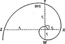 Рис. 5.4 а. Золотая спираль Некоторые из соблюдающихся соотношений: