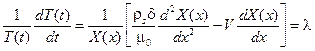 Точний розв’язок рівняння (22) ще має включати загальний розв’язок однорідного рівняння (22), для отримання якого у (22) використаємо підтановку B(x,t)=X(x)×T(t). (25) Використовуючи (25) у (22) без правої частини, розділивши змінні, отримаємо