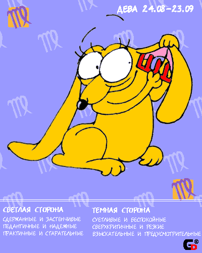 Дева Что можно сказать о знаке, когда за меня все уже сказала сухая наука? Дева - самый, сука, жестокий и бесчеловечный знак зодиака. По данным международной статистики больше всего маньяков-психопатов произрастает как раз из Дев. Эта сука способна ласково улыбаться тебе, а в голове рисовать упоительную картину твоих кишок, привязанных к люстре. Выдам вам тайну - все маленькие Девы в децтве планируют стать Чорными Властелинами Планеты, а когды вырастают и понимают, что въебали, становятся просто бессердечными монстроидами и отравляют своей педантичностью и любовью к закону и порядку (а корни, понятно, еще из сопляческих желаний зохавать Вселенную) существование буквально каждому, кому повезет жить с Девой на одной территории. Жена-Дева - это та тетка, которая заправляет тебе кровать, когда ты в три часа ночи встаешь поссать. Мужчина-Дева - самый страшный учитель математики, какого вы можете себе вообразить. Контрол-фрики, конечно же. Трахается по расписанию, потому что во всем должен быть порядок. Причин своих поступков никому не объясняет, виной тому - опять-таки вынесенная из децтва мания величия. Впрочем, может впасть и в другую крайность - ни в грош себя не ставить и вообще, сука, каждодневно изображать из себя жертву и агнца, чем и заябывает окружающих до страшного. Вообще, кстати, любит сыграть на нервах близких и начать страдать на публику, причем, гадина, сама обычно верит в свои страдания, отчего начинает болеть и чахнуть. В быту полезна, потому что знает и умеет множество всяких кунштюков (выучила пока планировала стать Чорным Властелином). Вообще жить с ней можно, если тотально абстрагироваться и убрать из дома оружие.