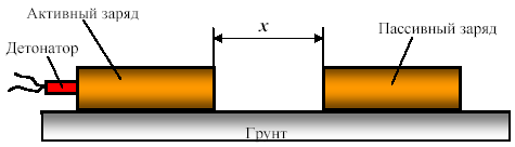 Рис.13 Схема испытания ВВ на передачу детонации.