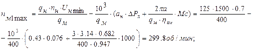 Так как закон регулирования – поддержания постоянного момента, то М=1000 Нм; Скоростная характеристика строится с учетом реверсивности движения путем нанесения на график точек с координатами nmin UHmin; nmax UHmax; Параметр регулирования насоса: