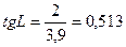 Допустим, что величина "а" =2 м, величина "в" = 3,9 м, что по таблице 18 тангенсов соответствует а=27о. Таблица 18. НАТУРАЛЬНЫЕ ВЕЛИЧИНЫ ТАНГЕНСОВ