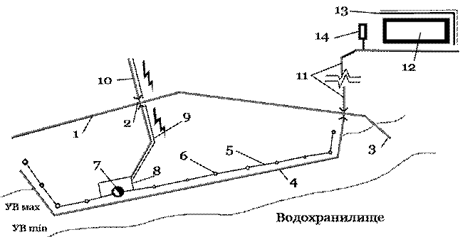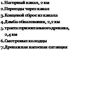 1. Котлован для насосной станции 2. а- отвал ростительного грунта б- отвал минерального грунта 3. Площадка для размещения бетонного, арматурного и опалубного хозяйства 4. Склады 5. Территория для объектов административно- бытового комплекса 6. Базы механизации земляных работ со стоянками, мастерскими, складами ТБО 7. Базы субподрядных организаций 8. Дорога и подъездные пути 9. Дорога вдоль дамбы с закрытого берегового дренажа 10. Дорога к базе генподрядчика 11. Место размещения подъемного крана