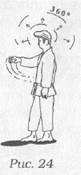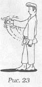 Сознание, делающее тело стабильным В учении мастера Тохеи мы часто встречаем идею Фудошин, создающего Фудотаи, то есть непоколебимое сознание, передающее это свойство телу Здесь все зависит от уровня восприятия, достигнутого с помощью вашей способности помещения Одной Точки в центр пространства. Давайте проверим это следующим тестом: расслабленно встаньте в удобную позицию и раскачайте руку, как показано на рис. 23. Если вы внезапно остановите ее, будет трудно пройти тест и сохранить равновесие с рукой, которую нельзя сдвинуть давлением снизу. Теперь повторите это же упражнение, увеличивая внимание без концентрации на чем-либо конкретном, достигая состояния глобального восприятия, как в тесте, описанном в предыдущей главе, где руки касались стен. Теперь тело и руку действительно невозможно сдвинуть (см. рис. 24). Чтобы научиться удерживать равновесие даже после быстрого движения, необходимо достигнуть высшего восприятия пространства. На самом деле, сознание двигает тело, но только хорошее восприятие пространства позволяет нам остановить тело без колебания.
