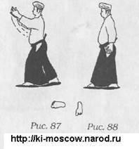 6. Зенго ваза Оно включает такие же движения, как и предыдущее упражнение, но со сменой направлений (рис. 85-88). Не забывайте, что сознание совершает движение раньше тела, так что изменение направления гибко и естественно и не мешает раскачиванию рук, а внимание при этом не заостряется на движении ног.