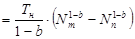 где Т i – трудоёмкость изготовления i -го номера изделия, н-час; Tн - начальная трудоёмкость изделия, н-час; b – показатель степени, отражающий интенсивность снижения трудоёмкости изделия в период освоения (0 < b < 1). Использование уравнения(2) позволяет обоснованно планировать технико-экономические показатели в период освоения: трудоемкость и себестоимость изделий, приемлемые для предприятия цены на продукцию, ожидаемую прибыль, потребную численность рабочих, необходимые фонды оплаты труда и т.д. Если по выбранному предприятием плану освоения новой продукции обоснована проектная трудоёмкость изготовления изделия Тосв , начальная трудоёмкость Тн , а также динамика снижения трудоёмкости /величина “ b ”/, уравнение (2) примет вид: