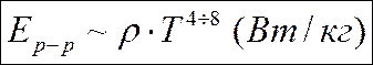 Эффективность энерговыделения p-p цикла очень зависит от температуры (T) ядра звезды (r – плотность звёзды):