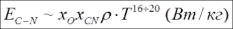 Эффективность энерговыделения C-N цикла более существенно зависит от температуры T ядра звезды (r – плотность звёзды, xO – концентрация кислорода, xCN – концентрация углерода и азота):