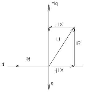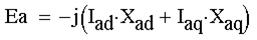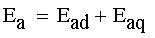 Ead-соответствующая ЭДС реакции якоря по продольной оси (совпадающей с осью полюсов). Eaq- соответствующая ЭДС реакции якоря по поперечной оси (проходит по середине межполюсного пространства). E0-ЭДС холостого хода, создаваемая потоком обмотки возбуждения.