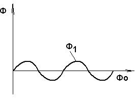 Ф0-основной поток, создаваемый ОВ(const). Ф1-переменный поток, наводимый при перемещении ферромагнитной массы ротора.