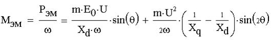 Выражение для мощности и моментов двигательного режима синхронной машины (СМ) можно получить из соответствующих выражений (уравнений) генератора, подставляя в них соответствующие отрицательные значения угла