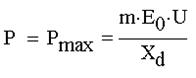 Для неявнополюсного синхронного генератора (СГ) (Xd=Xq) основная формула мощности будет иметь вид: