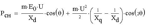 Путем проведения преобразований с учетом формул (20) и (21) можно получит в итоге общую формулу мощности для явнополюсного синхронного генератора (СГ):