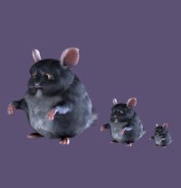 Particle System (Система частиц): Первое необходимое действие, настройка системы частиц с типом Hair. Чтобы иметь полный контроль, волосы будут вручную отредактированы, добавлены и удалены в Particle Mode, таким образом цель здесь состоит в том, чтобы создать хорошее начальное распределение. Для Шиншиллы используется приблизительно 1000 волос для основного слоя. Для меха, число сегментов (Segments) может быть установлено приблизительно равному 5, больше сегментов просто означает, что будет больше точек управления, когда волосы будут редактироваться. Число сегментов также может быть переключено позже, когда волосы редактируются. Небольшое значение Normal и Tangent (Tan) скорость дают волосам первое, приблизительно правильное значение. Parents and Children (Родители и потомки): Пушистый грызун имеет намного больше чем тысяча волос, но весьма не удобно управлять всеми ими. По этой причине можно вырастить волосы потомки, основанные на родительских волосах. Эти волосы должны испуститься из граней, так, чтобы они были присоединены к мешу, все еще интерполируя соседние родительские волосы. Параметры Amount и Render Amount аналогичны имеющемуся модификатору Subsurf (т.е. аналогичны по работе параметров. Первый – это отображение в окне 3D просмотра, второй – это отображение при рендере). Шиншилла имеет 1000 волос потомков на 1 родительский для рендеринга, результат примерно 1 миллион волос. Чтобы сделать волосы потомки разными, параметры Rough для потомков используются.