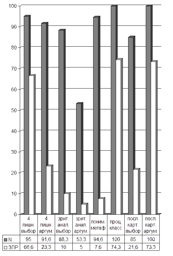 Анализируя показатели количественной разницы между параметрами характеристик мышления детей с ЗПР и детей в норме, можно сделать вывод о том, что наиболее значимыми выступают следующие характеристики мышления. 1. Объяснение процесса классификации (4-й лишний - аргумент) 2. Процесс выбора аналогий (аналогии зрительные – выбор; аналогии зрительные – аргумент) 3. Метафоры 4. Логическое мышление (последовательные картинки - выбор) На основании этого можно утверждать, что данная гипотеза подтверждена. Да, у детей 5-6 лет с задержкой психического развития существуют отличия в мыслительной деятельности от детей 5-6 лет с нормальным психическим развитием.