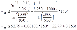 Москва 2013 г. Вариант №6. Исходные данные: Интенсивность отказов – 0,004 Риск изготовителя – 0,06 Риск потребителя – 0,1 Объем партии – 150 Максимальное время испытаний – 22000 Верхний уровень надежности – 1000 Нижний уровень надежности – 950 Расчет границ области принятия решений. Выражение для линии приемки: