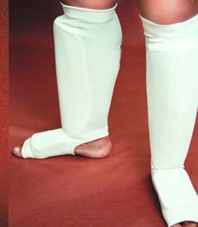 Щитки на голень – чулочного типа, белого цвета, с защитой голеностопа.