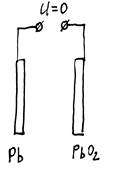 Как и в предыдущем случае, если у нас электроды находятся вне электролита, напряжения и тока нет.