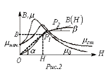 Что мы наблюдаем в общем случае. Точка Р1 перегиба графика В(Н) совпадает с точкой перегиба графика μ, после которой график В(Н) становится близким к горизонтальной линии, а параметр μ стремится к нулю. Как говорится в действующей модели физики вещество «насытилось», не известно чем. А что произошло на самом деле. В точке Р1 вещество достигло уровня не отличия от среды нахождения, т.е перешло к уровню минимального энергообмена, и соответственно энергозатраты вещества на поддержание этого состояния резко уменьшаются, что и показывает график μ. Т.е. μ – это энергетический показатель, который показывает уровень энергии, необходимый веществу для достижения состояния не отличия от среды нахождения, или другими словами для перехода к минимальному уровню энергообмена со средой. И он равен средней величине расщеплённого состояния, т.е. среднее арифметическое от энергии взаимодействия со средой и энергии внутреннего взаимодействия вещества (возможны уточнения). И когда энергия внутреннего взаимодействия вещества становится равной энергии внешнего взаимодействия со средой, показатель μ стремится к 0. Так что вещество ничем не насыщается, а просто переходит в новое уравновешенное состояние со средой нахождения.По этой причине в зоне насыщения магнитные системы не работают. Как они могут работать, когда их уровень взаимообмена со средой минимален. В природе всё очень просто, и всё изменения происходят в одно время и в одной точке, и компенсация этих изменений происходит в этой же точке, посему и нет никакой предистории, прямой петли и обратной, и прочей лабуды типа доменов, никто никуда не крутиться и т.д. Это конечно общая модель, требующая дальнейших уточнений. Надо заметить, что явление гистерезиса имеет общий характер для всех систем, будь то физические, биологические, общественные. Его изучение, именно с этой точки зрения, позволит понять и использовать естественные природные энергии.