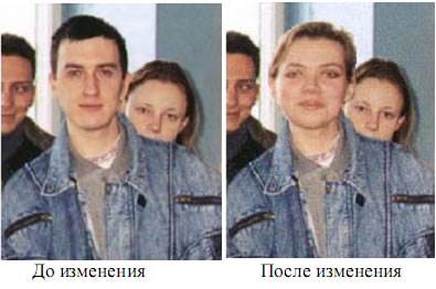 Закріпимо отримані знання на наступному прикладі. Візьмемо фотографію групи (group.jpg). На передньому плані зображення знаходиться чоловік у джинсовій куртці, а праворуч дівчина в білому плащі. Мета цього завдання поміняти місцями їх особи. Це перетворення потрібно виконувати із забезпеченням бездеффектности переходу між старим зображенням і плагін (реалістичності переходу між ними). Крім цього здійснити корекцію кольорів групи розрізнених точок зображення на прикладі управління кольором рум'янцю плица: 1 Виберіть фотографію із зображенням групи (group.jpg). 2 Перейшовши в режим швидкої маски, виділіть зображення обличчя чоловіка. При цьому можна скористатися інструментами Кисть і Олівець або будь-якими іншими інструментами (на ваш розсуд). Розмір пензля в PhotoShop вибирається на панелі "Кисті", краще використовувати невелику пензель з чіткими краями. Наприклад, зафарбуйте олівцем обличчя чоловіка червоним кольором в режимі швидкої маски, потім перейдіть в звичайний прежим і виберіть пункт меню "Виділення\Інверсія". У результаті повинно вийде виділене обличчя чоловіка. 3 Виберіть інструмент "Область" і перенесіть особа будь-яку сторону, виконуючи операцію копіювання (перенесення побласти утримуючи Alt). Виділена область на панелі "Шари" перетворилася в пункт "Плаваюча область". 4 Перенесіть цей пункт на зображення нового листа в ппалитре "Шари". Тобто створіть з виділеної плаваючої області новий шар і назвіть його "Boy". 5 Аналогічно вчините із зображенням обличчя дівчини. Виділіть особа в режимі швидкої маски (або будь-яким іншим пудобным засобом), скопіюйте його в новий шар з назвою"Girl". 6 Зробіть активним шар "Girl". Для цього на панелі "Шар" клацніть на пункті шару "Girl" - після цього він буде виділений білим кольором тла (інші шари photoshop мають сірий пфон). Оберіть інструмент "Переміщення". Натиснувши ліву пкнопку миші, перемістіть шар так, щоб голова дівчата опинилася на місці голови чоловіка. 7 Як видно з фотографії розмір осіб чоловіки і дівчата не збігаються. У нашому прикладі необхідно збільшити обличчя дівчини. Оберіть інструмент "Область", зробіть виділення всі галузі фотографії, натиснувши Ctrl+A (або вибравши пункт пменю Виділення/Всі). Для зміни розмірів особи скористайтесь