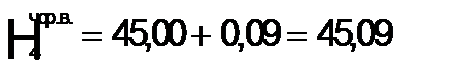 де - 0,25м (громадські будівлі) – переріз рельєфу. Результати отримуємо в метрах і, в залежності від величини горизонталі, віднімаємо його або додаємо. Аналогічно визначаємо чорні відмітки всіх кутів запроектованої будівлі та наносимо їх на виносці в знаменнику.