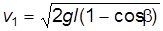 В результате соударения шары отскакивают друг от друга, имея начальные скорости v 1 и v 2 (рис. 3), и спустя некоторое время останавливаются. При этом нити отклоняются на углы b и g от вертикали. Начальные скорости шаров и углы отклонения нитей также связаны законом сохранения энергии. Скорость шара 4 после соударения определим по формуле