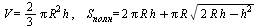 Объем шарового сегмента и площадь сегментной поверхности находятся по формулам