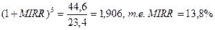 Приведена вартість відтоків по абсолютній величині дорівнює: PV OF = 10 + 15 × 0,893 = 23,4 у.г.о. Термінальна вартість дорівнює: ТV = 7 × 1,405 + 11 × 1,254 + 8 × 1,120 + 12 = 44,6 З приведених на схемі розрахунків і формули (9.16) випливає: