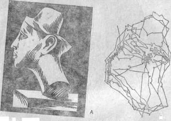 Рис. 5. Запись движений глаза (Б) при рассматривании в точение двух минут фотографии скульптурного портрета египетской царицы Нефертити (А).