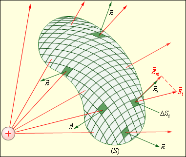 Рассмотрим теперь некоторую произвольную замкнутую поверхность S. Если разбить эту поверхность на малые площадки ΔSi, определить элементарные потоки